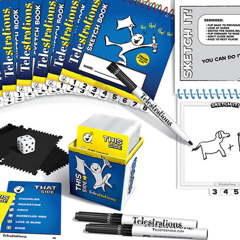 Telestrations is the visual version of the classic “telephone game” where you draw what you see, then guess what you saw to reveal hilarious outcomes!